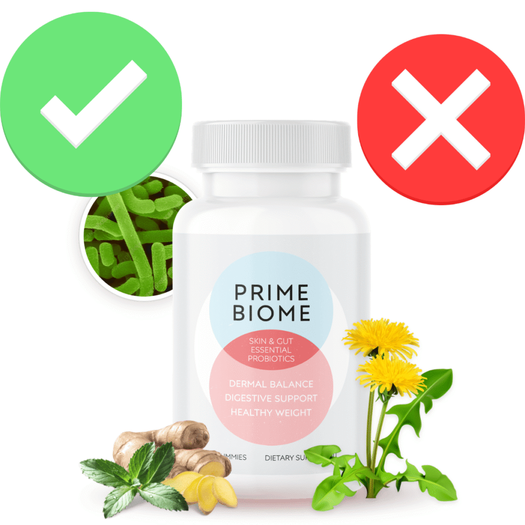 PrimeBiome is a natural and safe supplement, formulated with carefully selected probiotics and prebiotics to support gut health while minimizing the risk of side effects.
